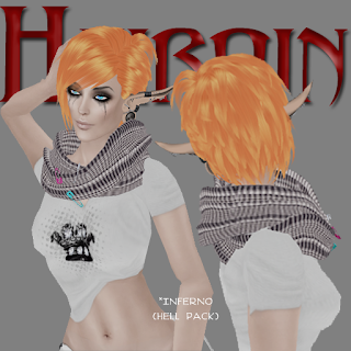 Don't worry about the feathers. You're not going to come out looking like the chicken lady (and it's probably only the Canadians out there that get the reference on that one. I miss the chicken lady.) Again with the hair pulled to one side but this time it creates poofy chaos and the feathers in the hair could either be 1) a reflection on the state of the hair i.e. rat's nest or 2) trophies from the ex you just plucked.