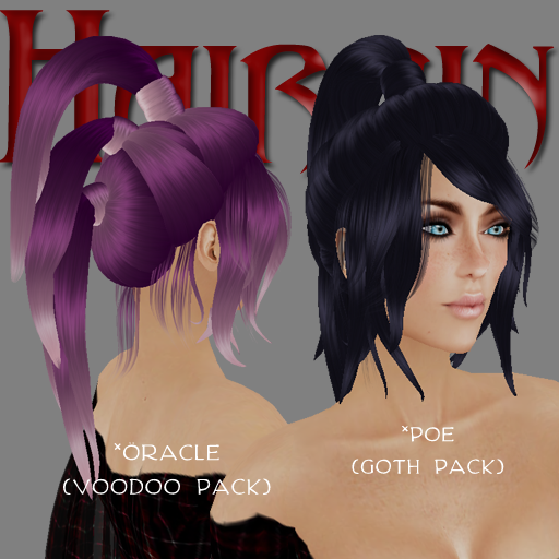 I've got 4 new ones out in the store. I'll start with the style that has two variations first. This is Afreet which comes with an optional gothic head piece that attaches to the chin and, like the hair, is equipped with the resizing menu. You can see the head piece better in the last shot.
